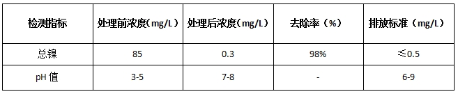 水质波动大:生产过程中化学制剂使用量不稳定,导致废水镍浓度波动范围广(50-100mg/L),对处理工艺的稳定性要求高。